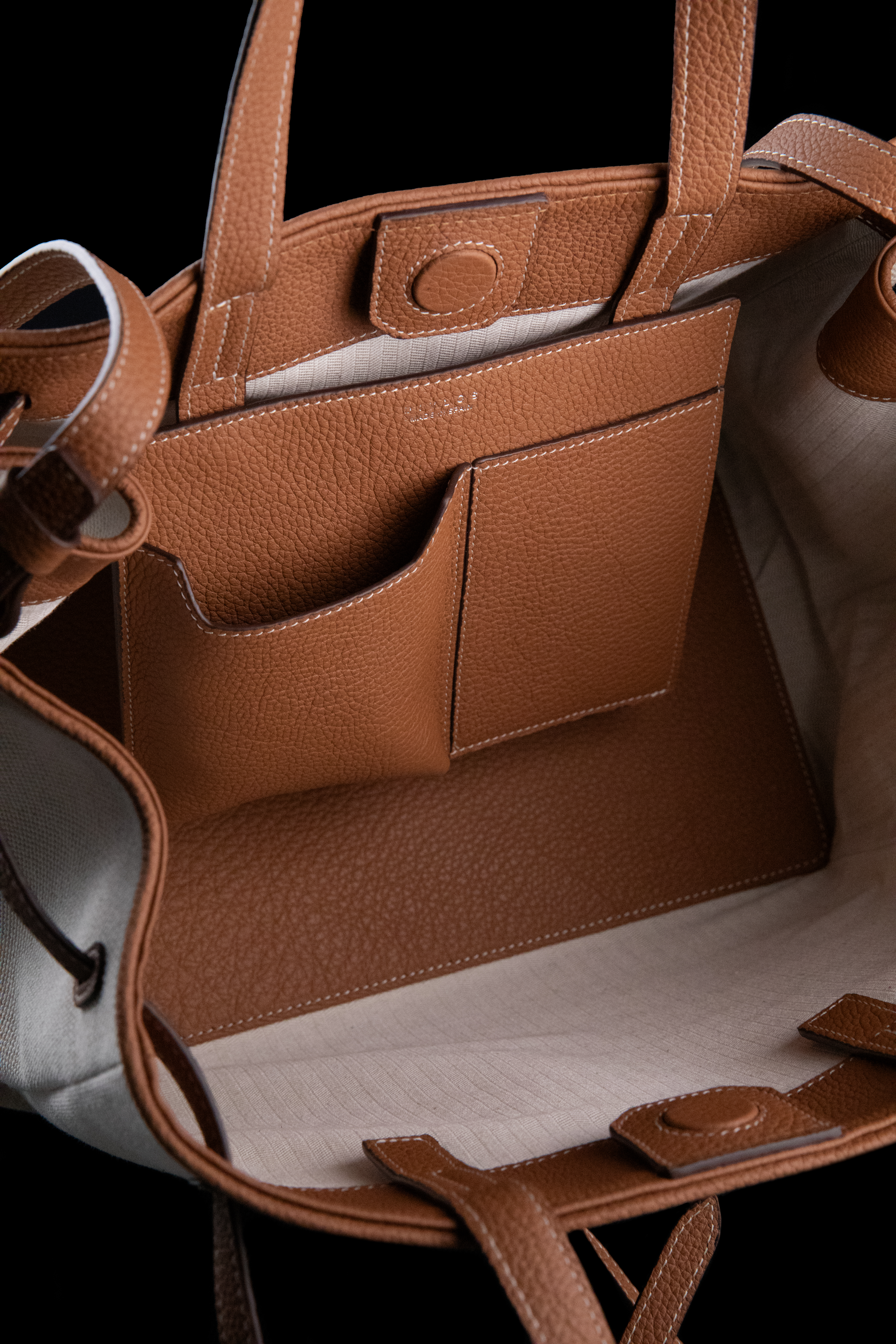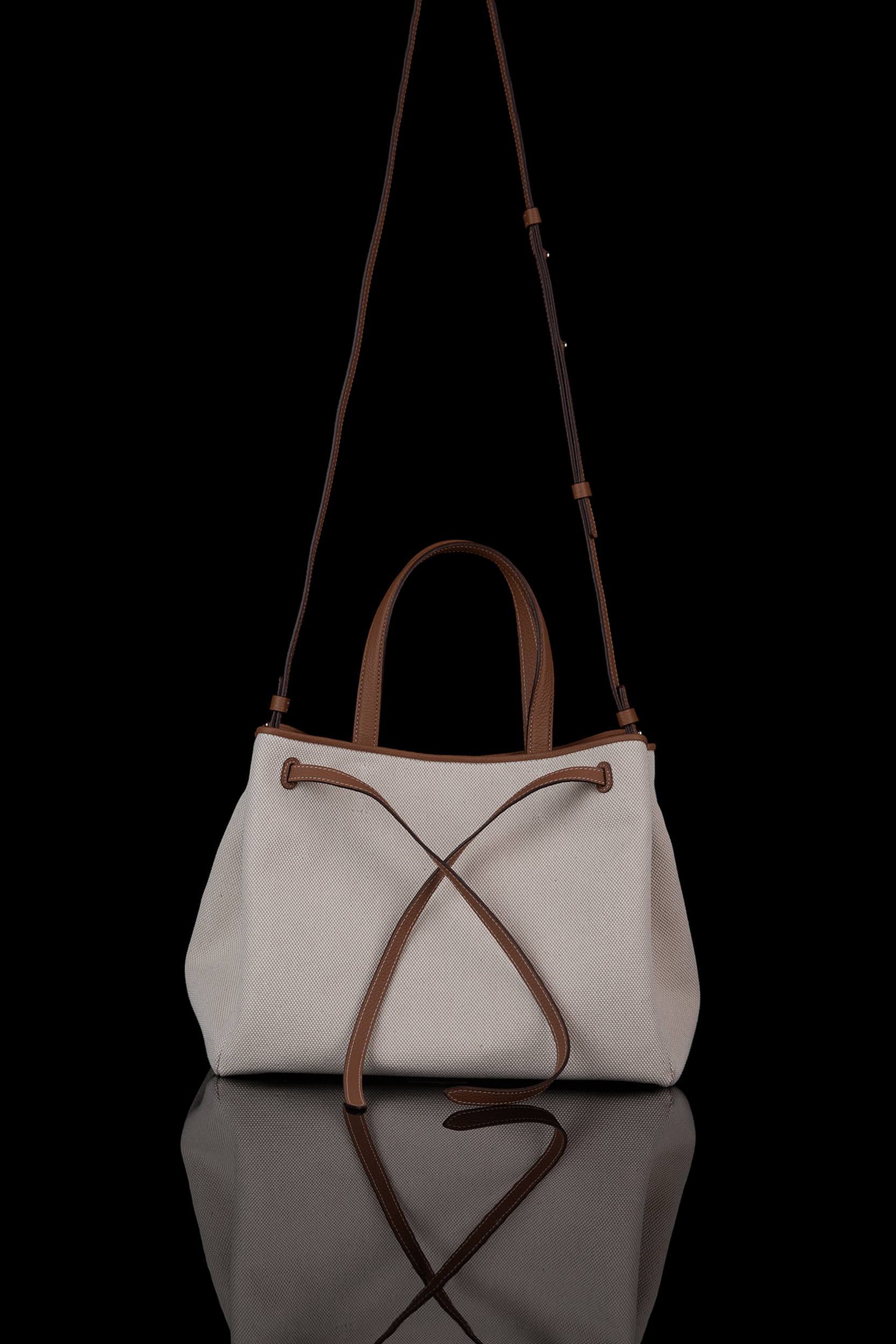 Olivia M Canvas Camel with Grainded Calfskin